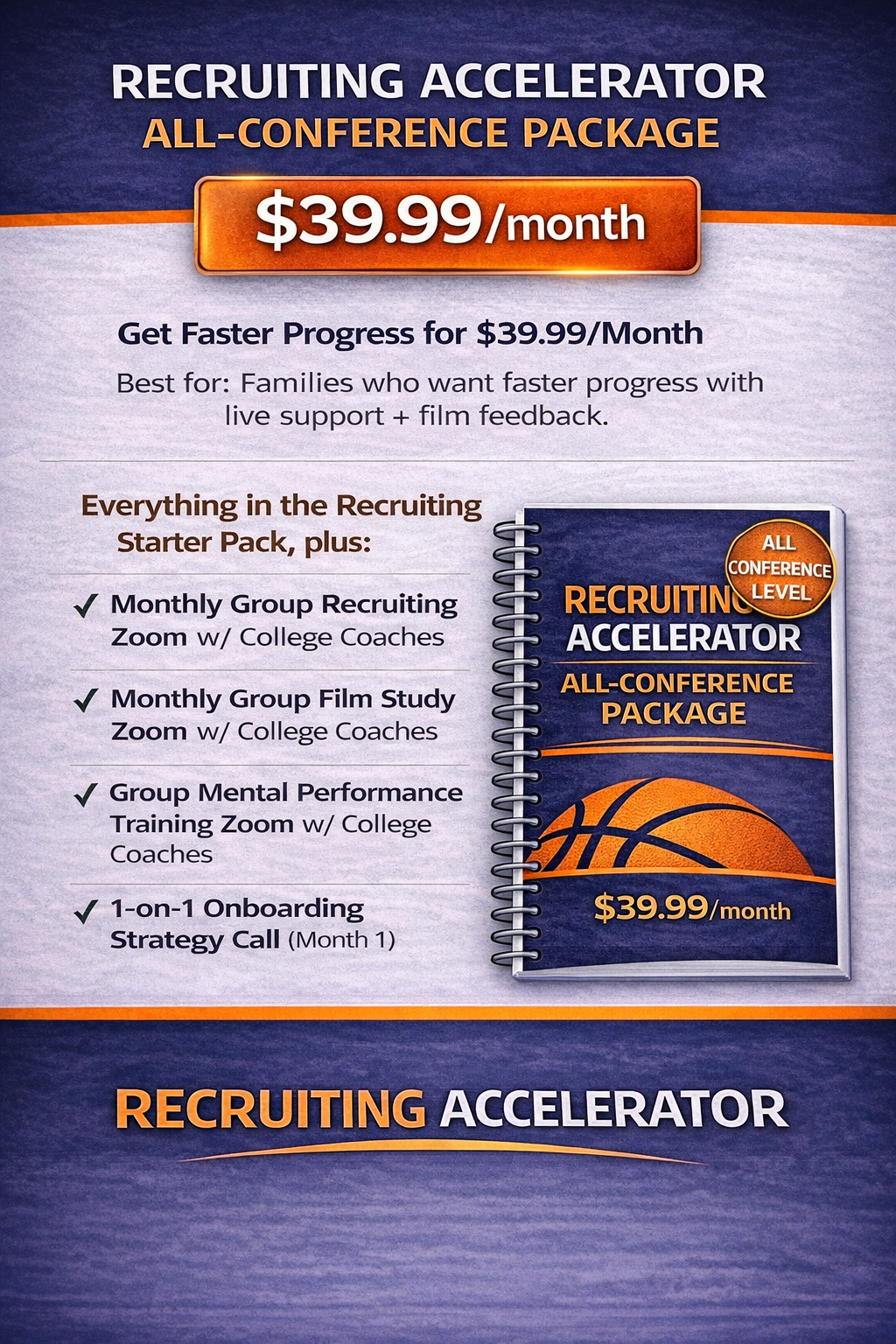 Our College Basketball Development Plan provides athletes and their families with a clear, step-by-step roadmap to navigate the journey toward playing at the collegiate level. This personalized plan outlines key milestones, recruiting timelines, skill development goals, and academic benchmarks—empowering players and parents with actionable guidance to make informed decisions and stay on track from preparation to college placement.